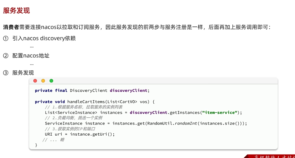 List<ServiceInstance> instances = discoveryClient.getInstances("item-service");