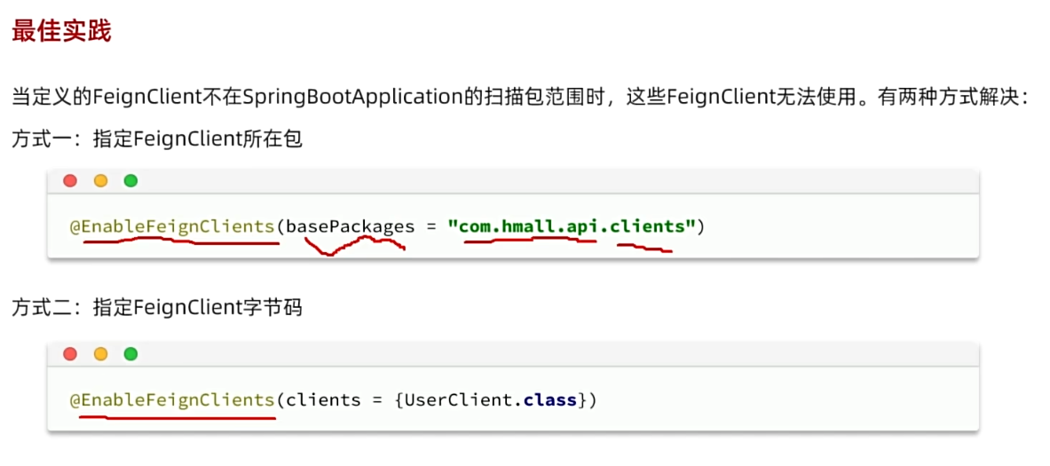 因为 cart 服务的包是 com.hmall.cart , 而 client 在 com.hmall.api.client , 因此不会扫描到, 所以