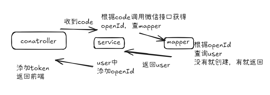 // user 中有 openId, User user = userService.wxLogin(userLoginDTO);