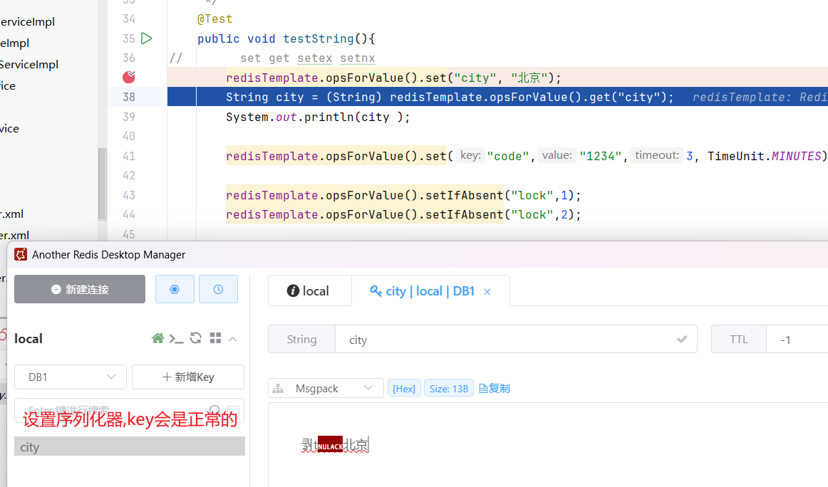 redisTemplate.opsForValue().set("city", "北京");