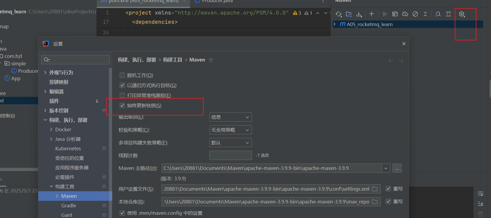 使用-U, 强制检查远程仓库中是否有依赖项(特别是 `SNAPSHOT` 版本的依赖)的更新。** 它会忽略本地仓库中已有的缓存,直接向远程仓库发起请求,以确保你获取到的是最新的 `SNAPSHOT` 构建。