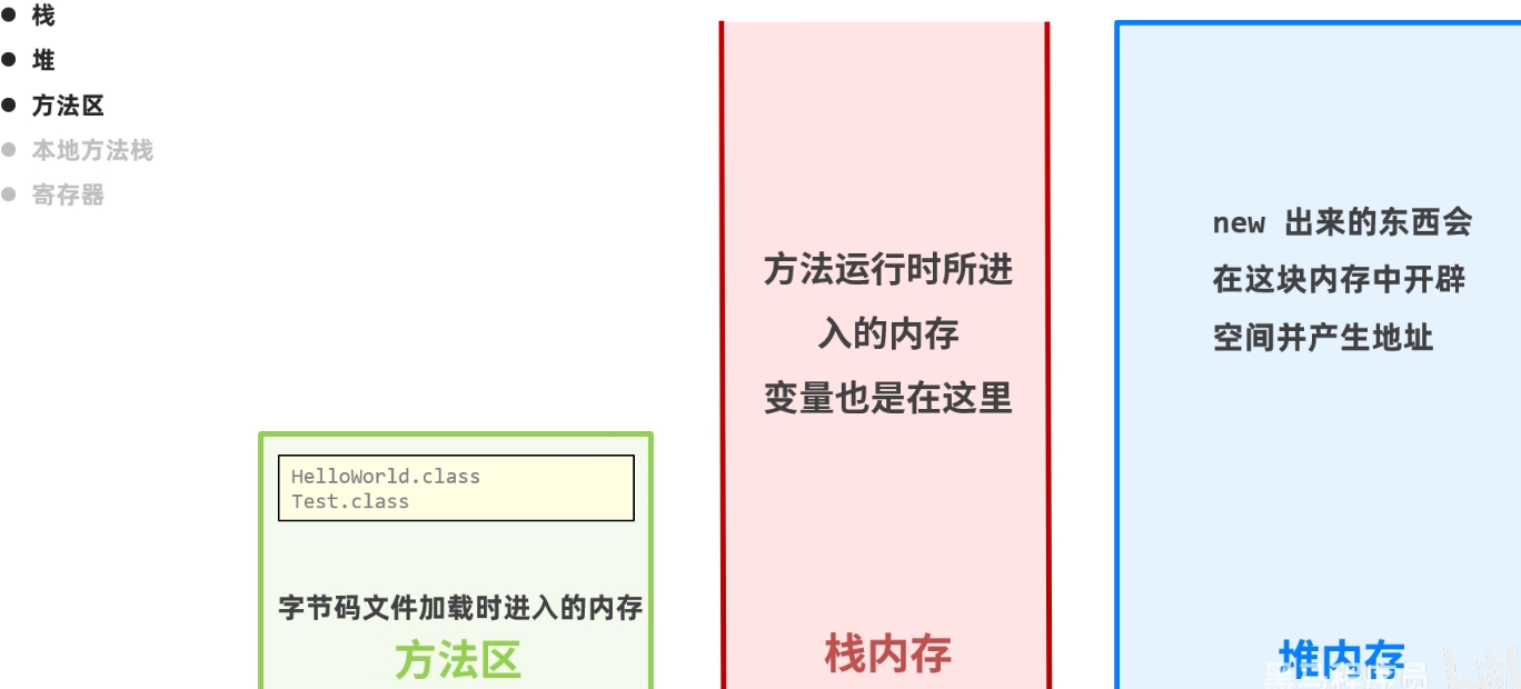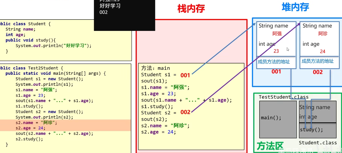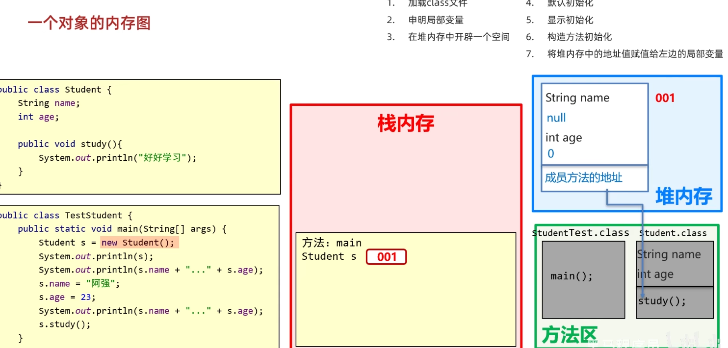 Java Java 内存分配 Java 内存分配 https://www.bilibili.com/video/BV17F411T7Ao?vd_source=a9a24992f7f570a16d5a331e8fed9f0d&spm_id_from=333.788.player.switch&p=87 内存图 一个对象 两个对象 new 了两个对象, 堆空间就会分配两个空间. main 方法执行完后, 栈空间释放, 堆空间中的对象也会释放
