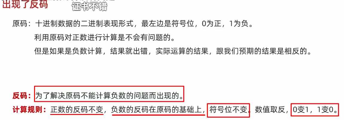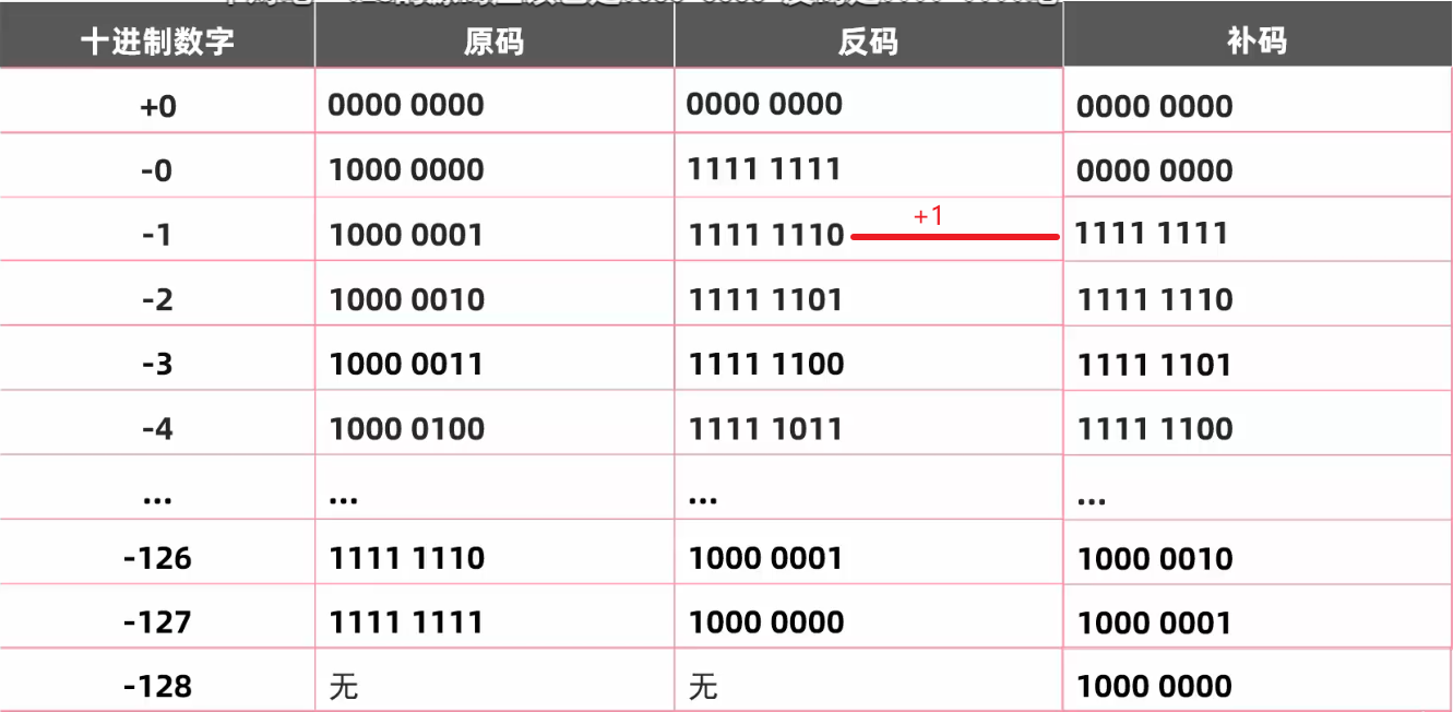 - 补码是负数的反码向下错了一位, 多出来一个