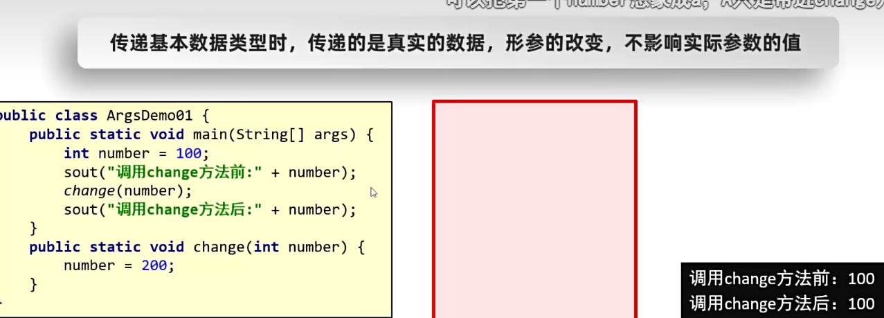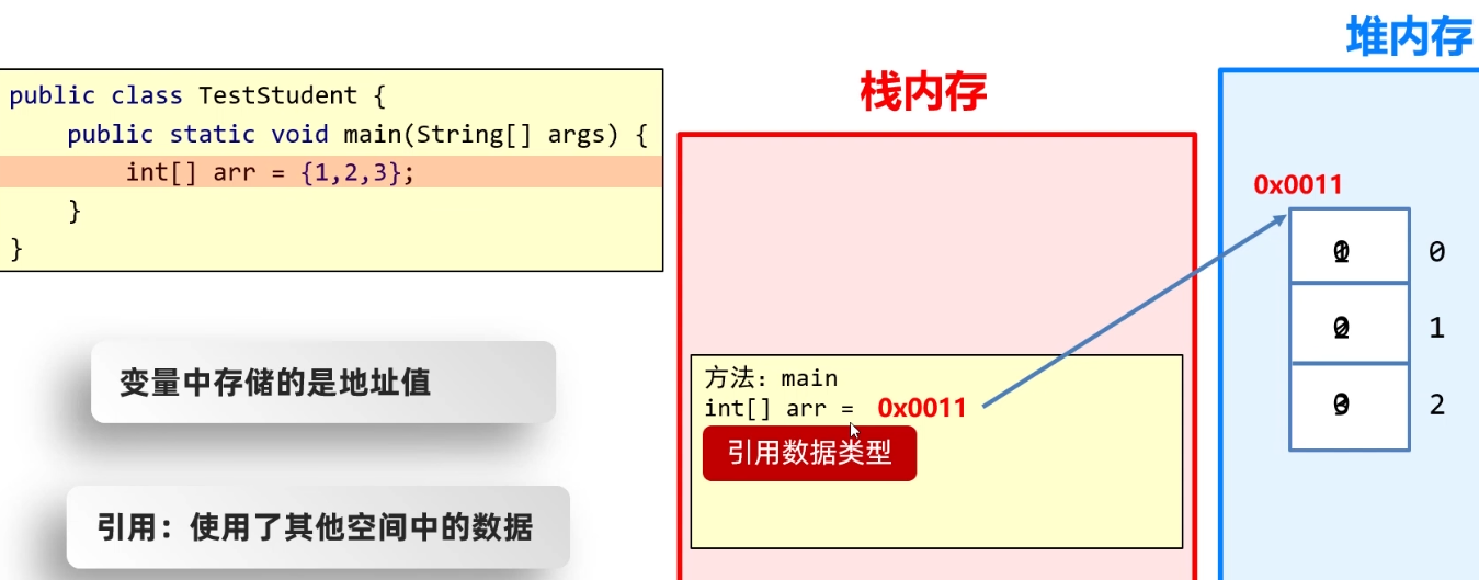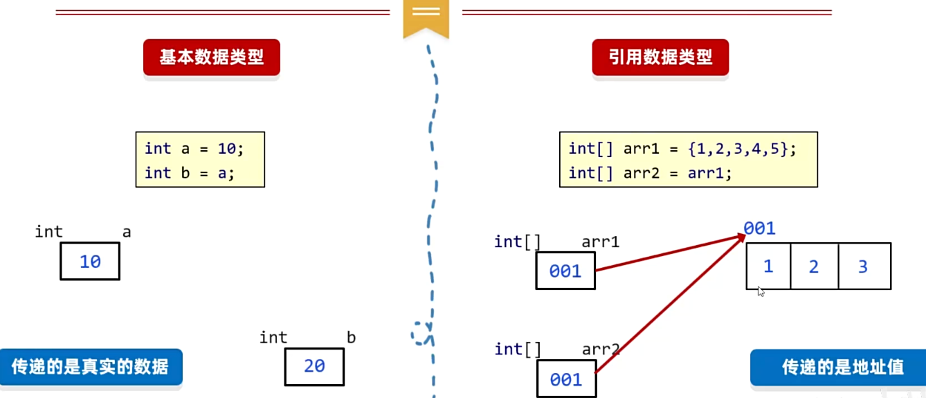 Java Java 方法 Java 方法 数据类型 基本数据类型: 四类8种: 整,浮,char,boolen 赋值给其他变量, 直接把字面量赋值给其他变量 引用数据类型: new 出来的数据类型. 赋值给其他变量, 赋值的是地址值. 值传递 引用数据类型传递地址 值传递内存