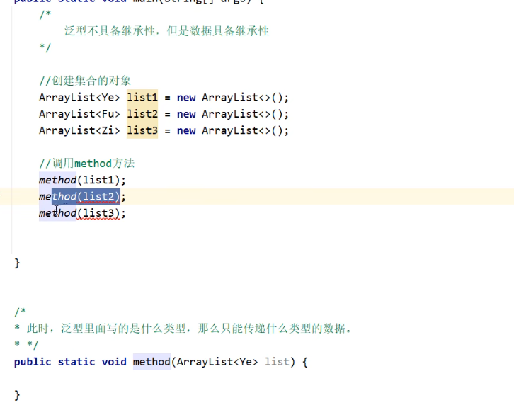 public void method2(ArrayList<? extends YeYe> arrayList){