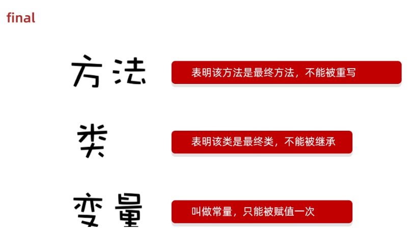 - 修饰引用数据类型, 记录的地址值不能改变, 内部的属性值可以改变.