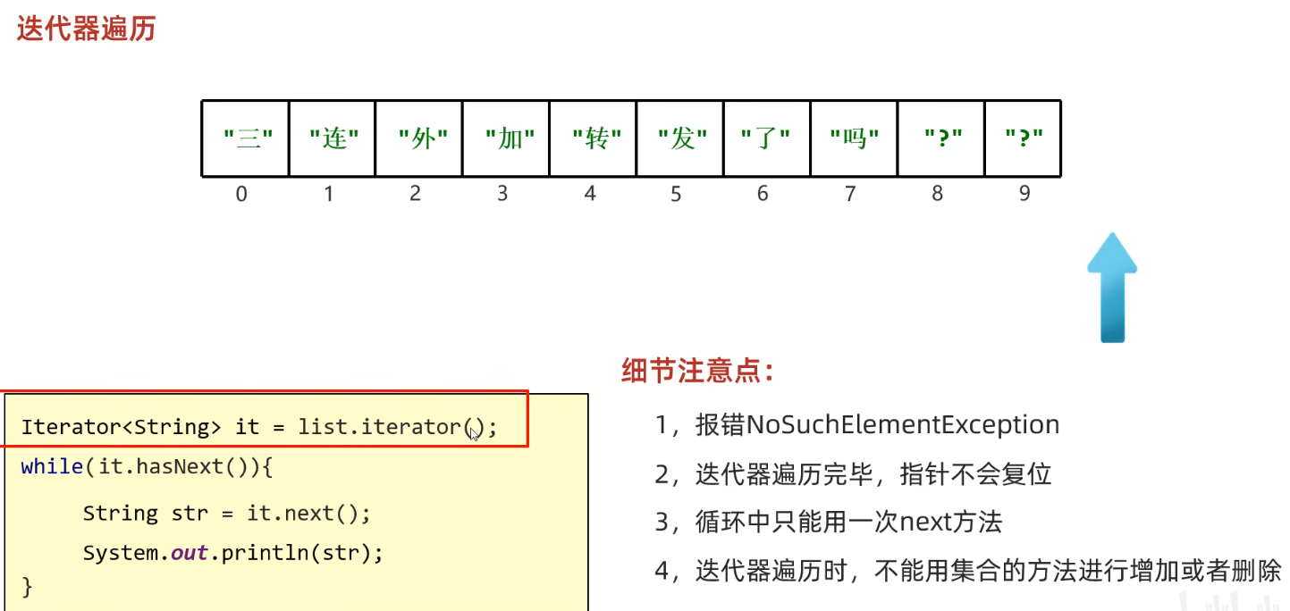 - 在迭代器内不能使用集合的方法对集合进行增加和删除.