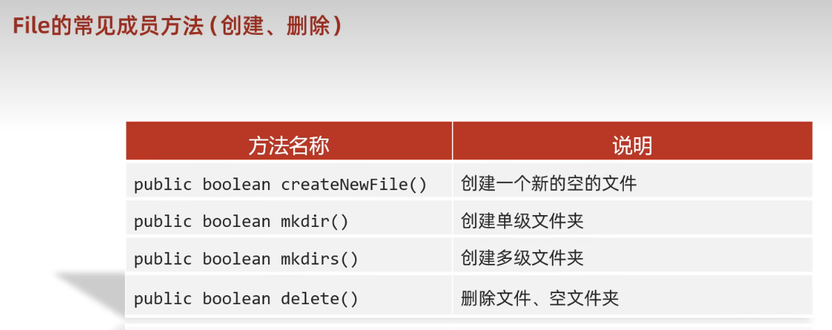如果父级路径不存在, 会抛异常; 有返回值表示创建成功或失败