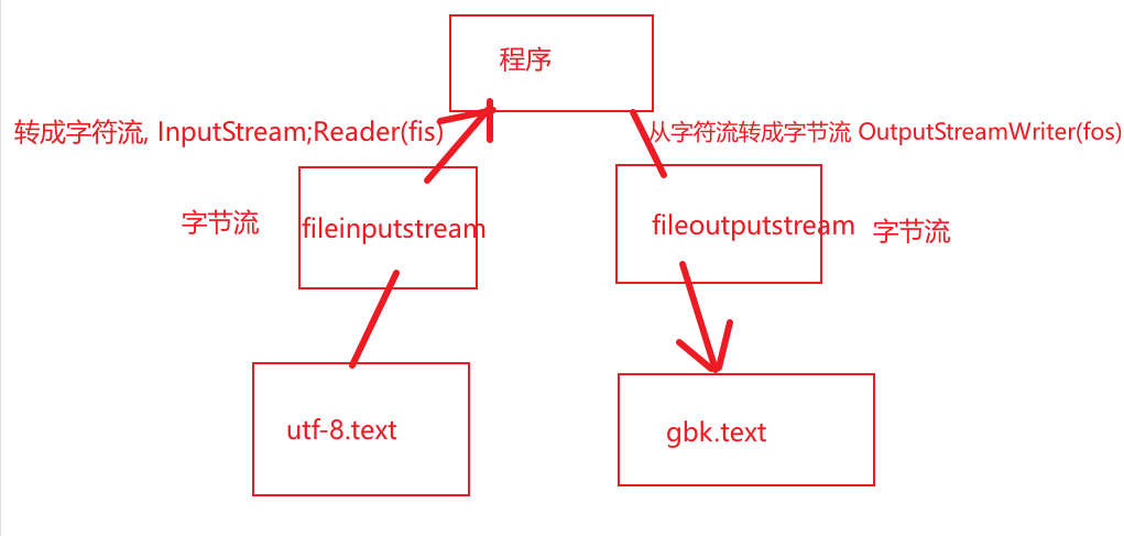 OutputStreamWriter完成,它会把字符转换后再写入OutputStream。
