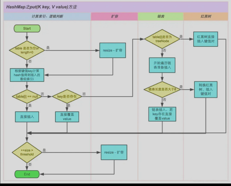 put方法在元素相等时仍然是覆盖, 否则和HashSet一样存成链表转为红黑树