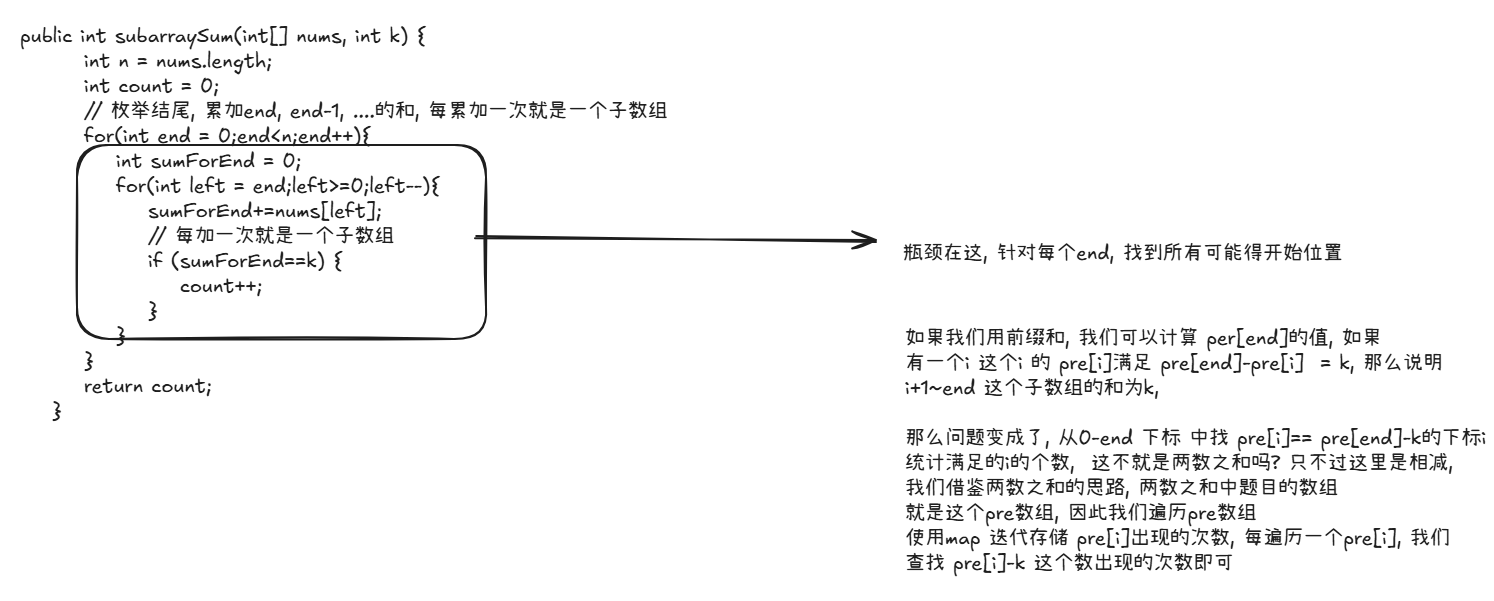 target - nums[i]是否存在。 - 和为 K 的子数组:使用前缀和,记录每个前缀和出现次数。
