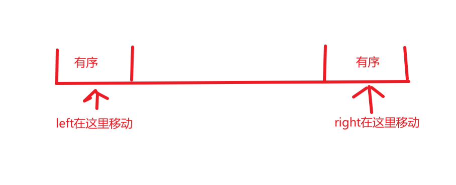 首先删除的是子数组,那么剩下的两端一定是有序的,那么可以先从两端找到两个有序数组,再在这两个数组内滑动即可。