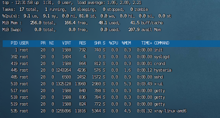 top 显示实时的 CPU 和内存占用情况,默认按 %CPU 排序。