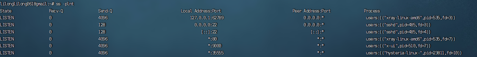 p:显示进程 ID 和进程名。l:只显示监听中的 socket。n:以数字形式显示 IP 和端口。t:只显示 TCP 连接;如果要查看 UDP,可以改为u。