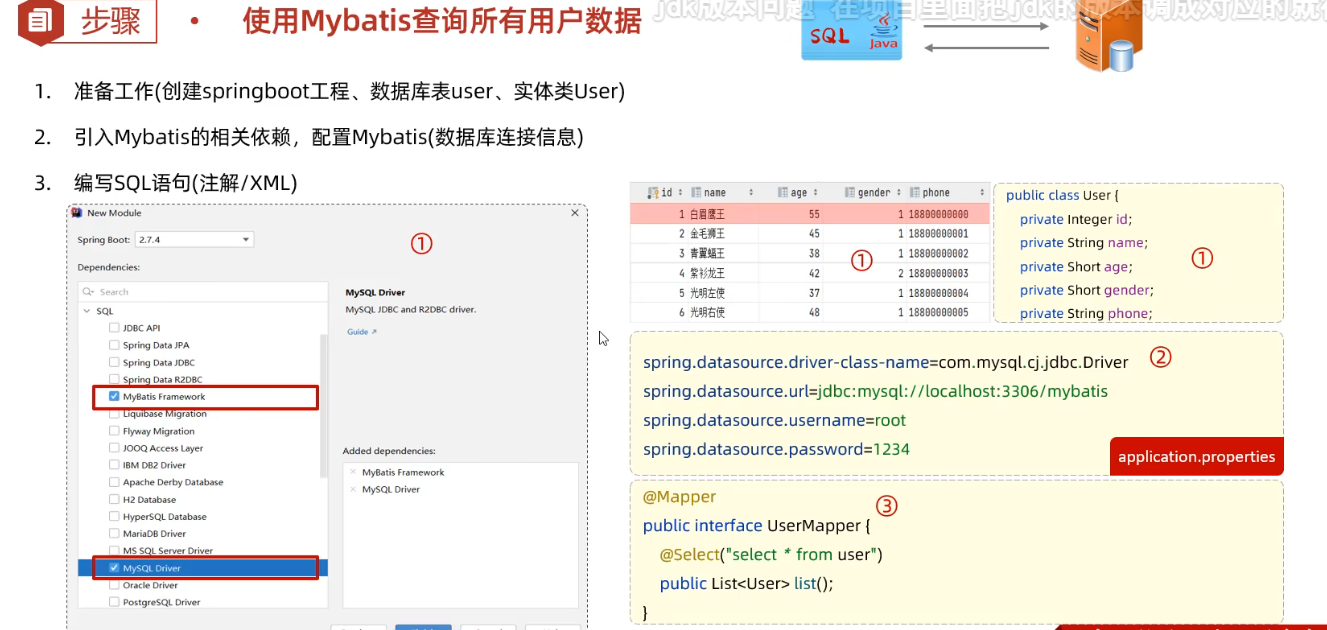 - 接口类前面要Mapper注解