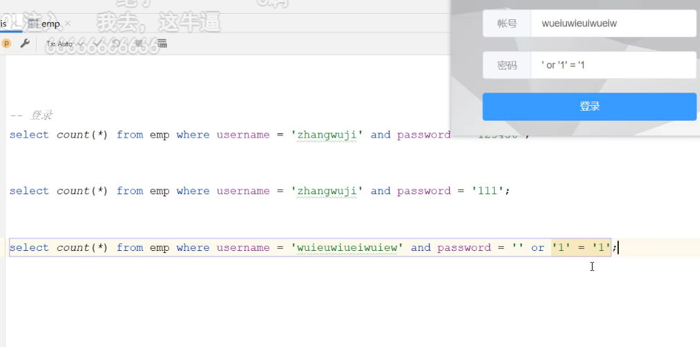 @Delete("delete from emp where id = ${id}") // 这个是拼接, 有sql注入问题