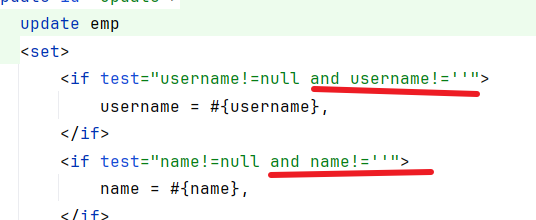update emp set <if test="username!=null">username = #{username},</if>