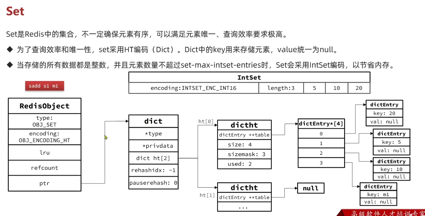 IntSet是Redis中set集合的一种实现方式,基于整数数组来实现,并且具备长度可变、有序等特征。 结构如下: