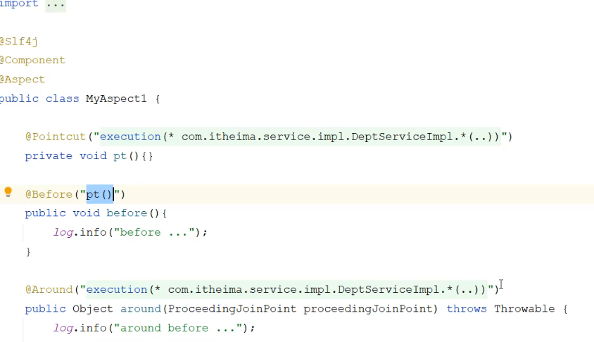 - pt 函数改为 public , 其他aspect 类中也可以引用