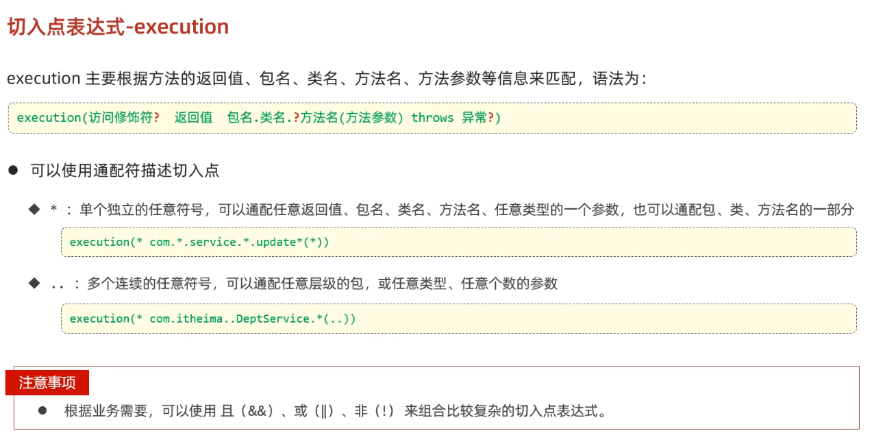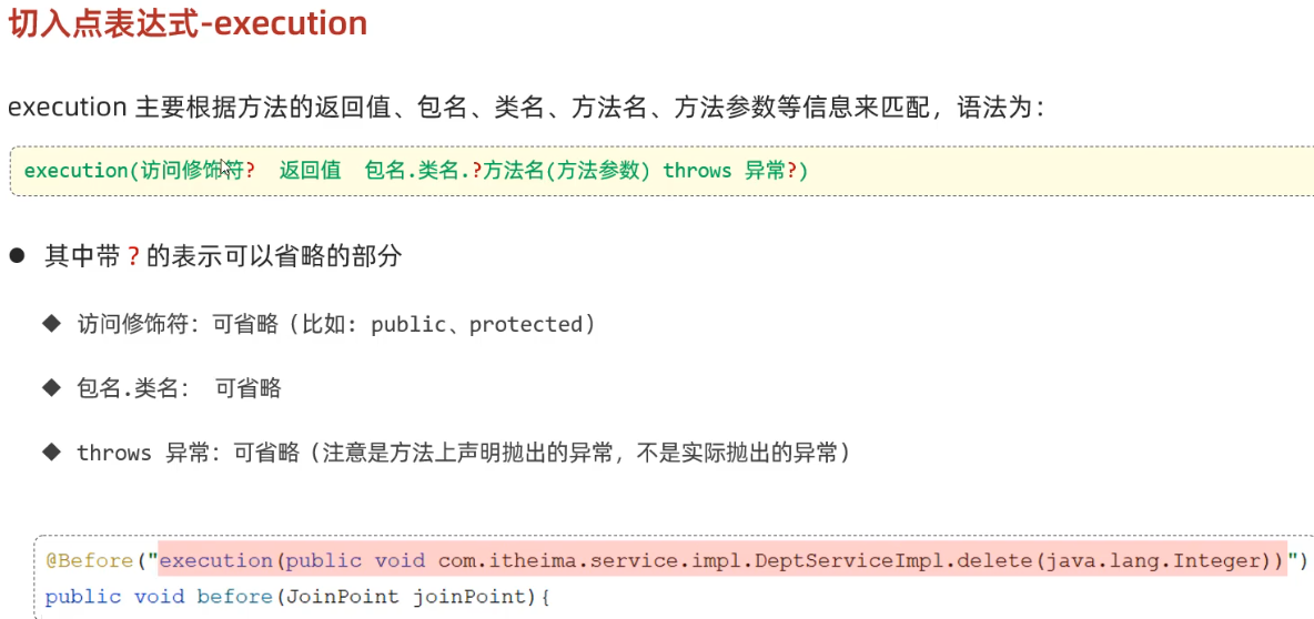 - 只写方法名, 会匹配所有同名方法; ;因此不建议省略包名类名;