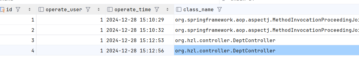 OperateLog operateLog = new OperateLog(null,operateUser,operateTime,className,methodName,methodParams,resultValue,costTime);