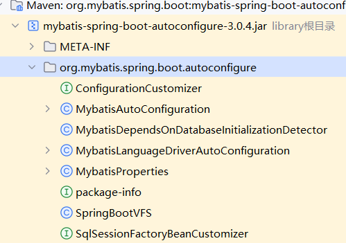 mybatis-spring-boot-autoconfigure 包中 spring/org.springframework.boot.autoconfigure.AutoConfiguration.imports 里面声明了自动配置类(自动配置类中声明了@Bean)