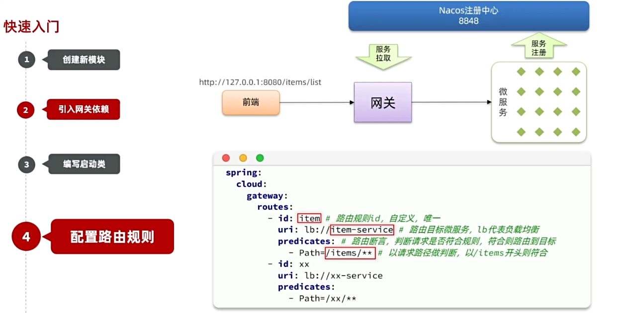 <!--网关--> <dependency> <groupId>org.springframework.cloud</groupId> <artifactId>spring-cloud-starter-gateway</artifactId> </dependency> <!--nacos discovery--> <dependency> <groupId>com.alibaba.cloud</groupId> <artifactId>spring-cloud-starter-alibaba-nacos-discovery</artifactId> </dependency>